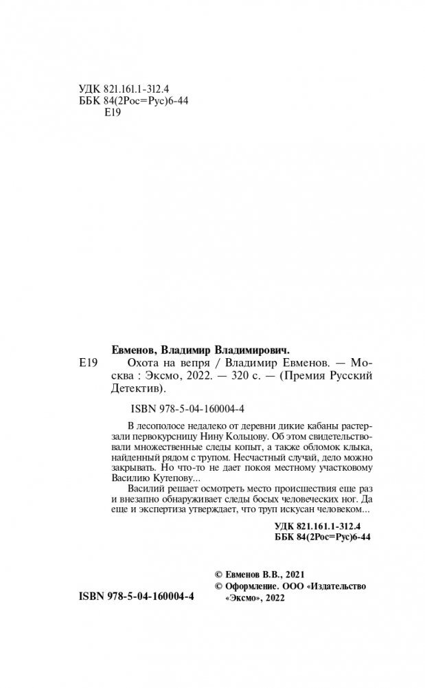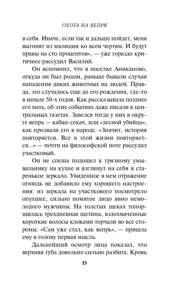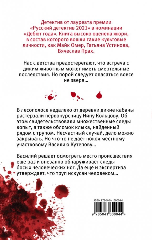 В лесополосе недалеко от деревни дикие кабаны растерзали первокурсницу Нину Кольцову. Об этом свидетельствовали множественные следы копыт, а также обломок клыка, найденный рядом с трупом. Несчастный случай, дело можно закрывать. Но что-то не дает покоя местному участковому Василию Кутепову…