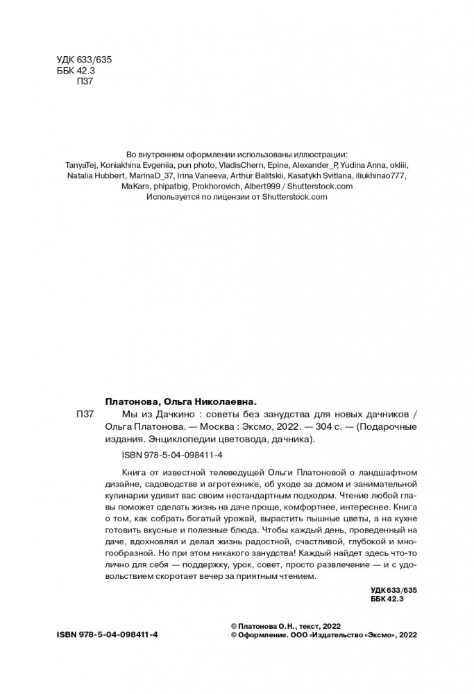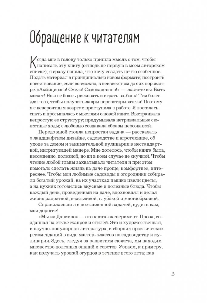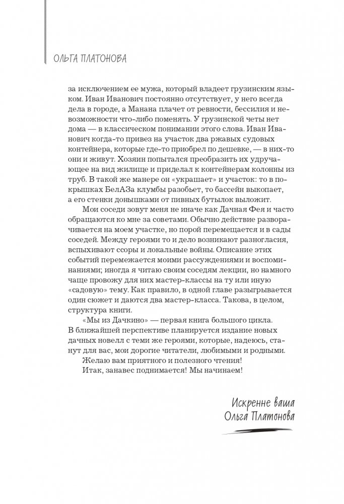 Книга от известной телеведущей Ольги Платоновой о ландшафтном дизайне, садоводстве и агротехнике, об уходе за домом и занимательной кулинарии удивит вас своим нестандартным подходом. Чтение любой главы поможет сделать жизнь на даче проще, комфортнее, интереснее. Книга о том, как собрать богатый урожай, вырастить пышные цветы, а на кухнях готовить вкусные и полезные блюда. Чтобы каждый день, проведенный на даче, вдохновлял и делал жизнь радостной, счастливой, глубокой и многообразной. Но при этом никакого занудства! Каждый найдет здесь что-то лично для себя — поддержку, урок, совет, просто развлечение — и с удовольствием скоротает вечер за приятным чтением.