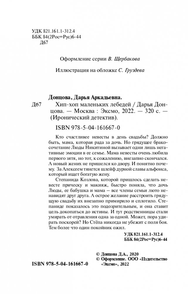 Степанида Козлова, которой пришлось сделать невесте прическу и макияж, быстро поняла, что дочь Люды, ее бабушка и мама – все члены семьи люто ненавидят друг друга. А острое желание расстроить грядущую свадьбу их внезапно примирило и сплотило. Степаниде показалось это подозрительным, и она ставит цель докопаться до истины. И тут родственницы стали умирать от отравления одна за одной. Может пора удирать поскорей? Но Стёпа никогда не убежит с поля боя. Тем более, что один покойник ожил…