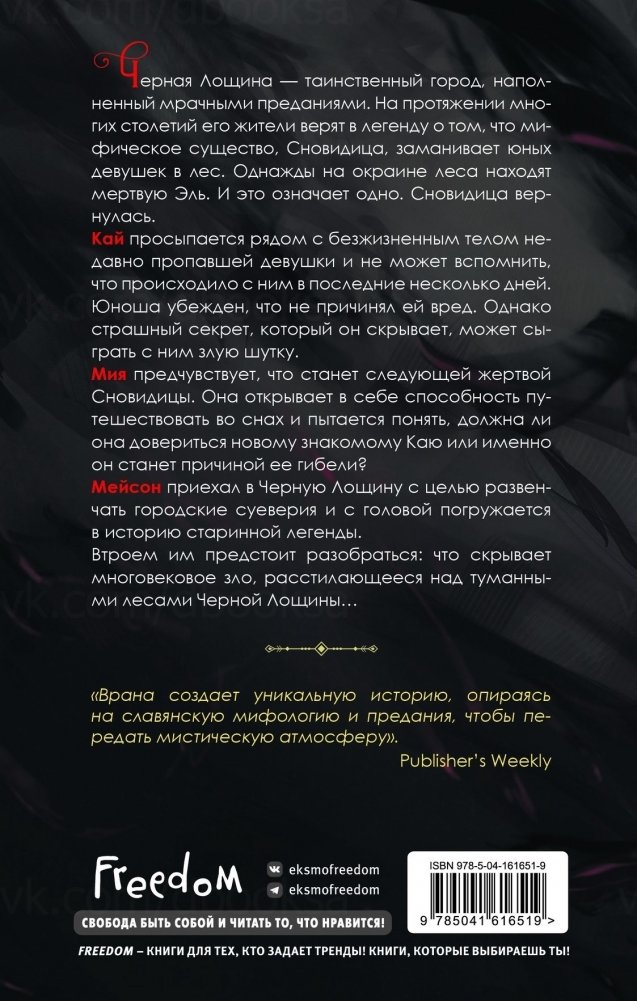Мия предчувствует, что станет следующей жертвой Сновидицы. Она открывает в себе способность путешествовать во снах и пытается понять, должна ли она довериться новому знакомому Каю или именно он станет причиной ее гибели?