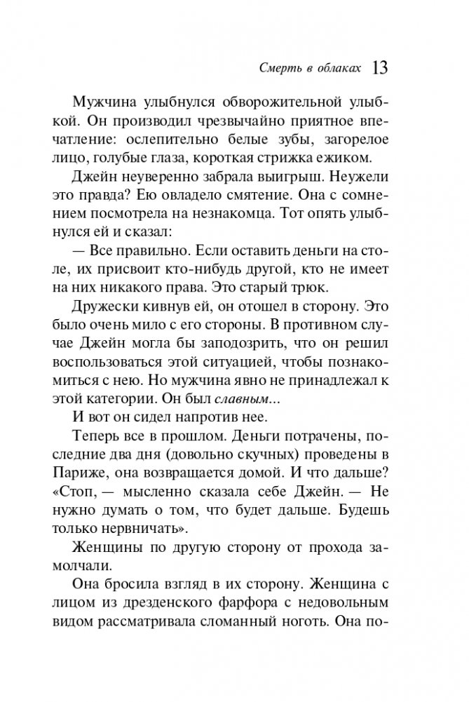 На борту авиарейса Париж – Кройдон спит спокойном сном знаменитый сыщик Эркюль Пуаро, даже не подозревая, что происходит буквально рядом с ним. Проснувшись, он узнает, что его соседка по самолету, пожилая француженка мадам Жизель, обнаружена мертвой. Сначала ее смерть списывают на укус осы, но Пуаро выясняет, что женщина погибла от укола отравленным дротиком. По заключению врача, смерть наступила в результате отравления редчайшим ядом. На борту самолета находятся лишь десять пассажиров и два стюарда – и один из них убийца. Под подозрением находится и сам Пуаро – крайне непривычная роль для известного сыщика…