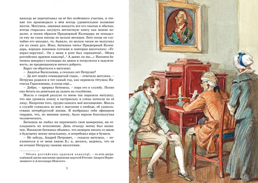 Об Александре Сергеевиче Пушкине Н. В. Гоголь когда-то совершенно справедливо сказал так: «Пушкин есть… чрезвычайное и, может быть, единственное явление русского духа: это русский человек в его развитии, в каком он, может быть, явится через двести лет… В нём… заключилось всё богатство, сила и гибкость нашего языка…» Каждое произведение Пушкина – образец безупречного литературного слова, непревзойдённого по своей красоте и мощи. И повесть «Капитанская дочка», вошедшая в это издание, – ещё одно тому подтверждение. Действие повести разворачивается во времена пугачёвщины, которую сам Пушкин охарактеризовал как «русский бунт, бессмысленный и беспощадный».