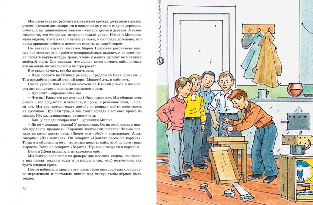 Герои повести «Весёлая семейка» Колька и Мишка после неудачного эксперимента с паровой машиной из консервной банки недолго слонялись без дела. Такие уж эти мальчишки – им обязательно нужно какое-нибудь занятие. А ещё лучше, чтобы от этого занятия была польза. И вот как-то раз Мишке в руки попала книга о разведении цыплят в инкубаторе. Сообразив, какую пользу сулит это новое увлекательное предприятие, друзья смело принялись за дело...