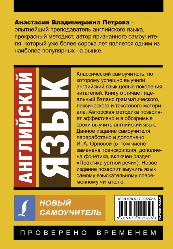 Классический самоучитель А.В. Петровой, обновленный в соответствии с современными нормами языка, позволит быстро и самостоятельно выучить английский язык. Вы сможете читать и переводить несложные подлинные тексты, включая технические и научные, а также освоите азы устного общения. Грамматика представлена только теми правилами, которые необходимы для практического овладения языком (письменным и устным). После прохождения курса вы будете уверенно знать более 2000 английских слов.