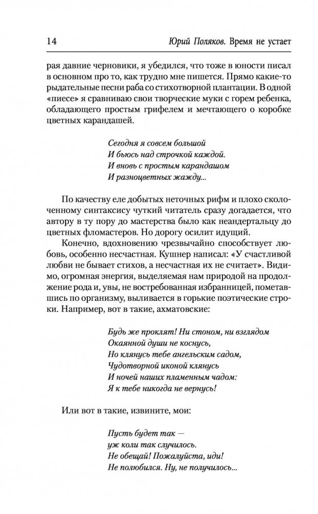 Открывает том искрометное эссе "Как я был поэтом", насыщенное тонкими и остроумными наблюдениями над "высоким ремеслом" стихотворца, а завершают оригинальные статьи о классиках жанра – Пушкине, Есенине, а также о выдающихся советских лириках Юрии Разумовском, Владимире Соколове, Андрее Дементьеве, Ларисе Васильевой, Евгении Евтушенко…