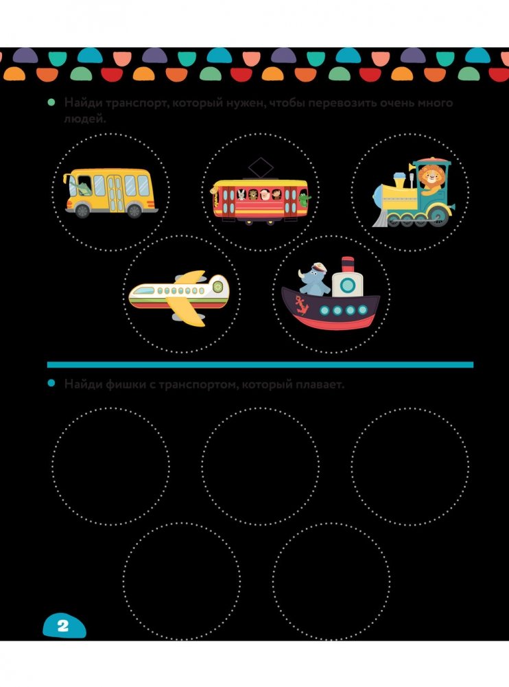 Игровая книга для самых маленьких составлена по принципу лото, в котором ребёнок выполняет задания подбирая фишки с ответами. Задания помогают развить мышление и зрительное восприятие малыша. Они составлены так, что ребёнок учится систематизировать и рассуждать, а также получает знания об окружающем мире.