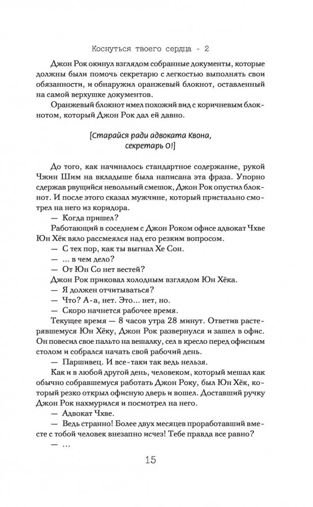 Настоящий подарок для поклонников корейских сериалов — вторая часть дилогии «Коснуться твоего сердца», по которой была снята популярная дорама «Достичь искренности». В главных ролях — звезды хита «Гоблин», Ю Ин На и Ли Донук. Актриса О Юн-Со, трагически лишившаяся всех ролей и контрактов из-за скандала в прессе, получает шанс снова блистать на экране — специально для нее написана роль в дораме. Чтобы подготовиться к ответственным съемкам, Юн-Со на время устраивается секретарем адвоката, ведь именно такую героиню ей и предстоит сыграть. И, конечно же, без приключений не обходится — в планы вмешивается любовь.
