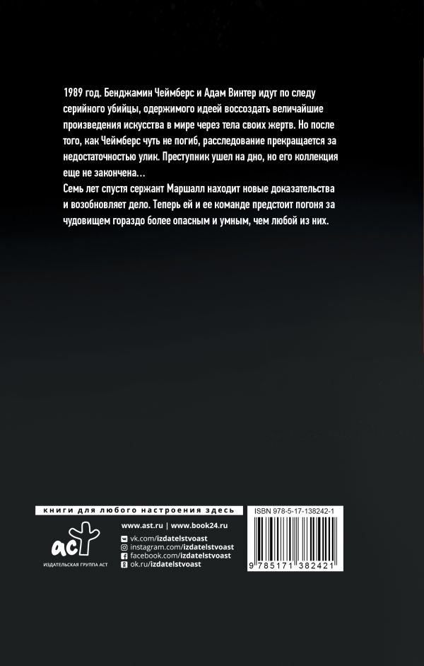 1989 год. Бенджамин Чеймберс и Адам Винтер идут по следу серийного убийцы, одержимого идеей воссоздать величайшие произведения искусства в мире через тела своих жертв. Но после того, как Чеймберс чуть не погиб, расследование прекращается за недостаточностью улик. Преступник ушел на дно, но его коллекция еще не закончена…