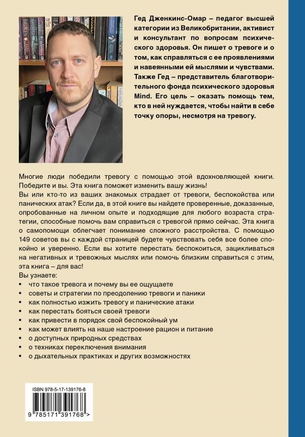 Вы или кто‑то из ваших знакомых страдает от тревоги, беспокойства или панических атак? Если да, в этой книге вы найдете проверенные, доказанные, опробованные на личном опыте и подходящие для любого возраста стратегии, способные помочь вам справиться с тревогой прямо сейчас. Эта книга о самопомощи облегчает понимание сложного расстройства. С помощью 149 советов вы с каждой страницей будете чувствовать себя все более спокойно и уверенно. Если вы хотите перестать беспокоиться, зацикливаться на негативных и тревожных мыслях или помочь близким справиться с этим, эта книга — для вас!