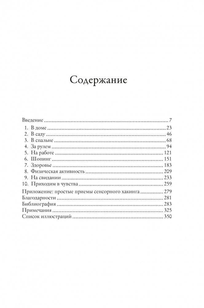 «Что я имею в виду, говоря о «сенсорном хакинге»? Освоить сенсорный хакинг — значит понимать, использовать и стимулировать чувства так, чтобы улучшить социальное, когнитивное и эмоциональное состояние человека. Если мы осознаем уникальные возможности каждого из чувств, если понимаем, как они взаимодействуют, что определяет их направление и наше поведение, то можем задействовать сенсорный опыт наиболее эффективно и таким образом повысить качество жизни тех, кто нам небезразличен, начиная с самих себя. Ваши цели могут быть разными: почувствовать себя спокойнее или энергичнее, сделать свою работу более продуктивной или менее напряженной, лучше высыпаться, лучше выглядеть, получать максимум пользы от тренировок… В любом случае наука о чувствах готова вам помочь» (Чарльз Спенс)