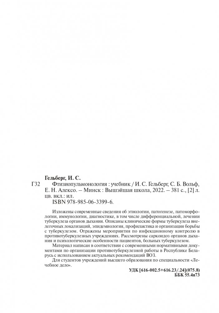 Изложены современные сведения об этиологии, патогенезе, патоморфологии, иммунологии, диагностике, в том числе дифференциальной, лечении туберкулеза органов дыхания. Описаны клинические формы туберкулеза внелегочных локализаций, эпидемиология, профилактика и организация борьбы с туберкулезом. Отражены мероприятия по инфекционному контролю в противотуберкулезных учреждениях. Рассмотрены саркоидоз органов дыхания и психологические особенности пациентов, больных туберкулезом. Материал написан в соответствии с современными нормативными документами по организации противотуберкулезной работы в Республике Беларусь с использованием актуальных рекомендаций ВОЗ.