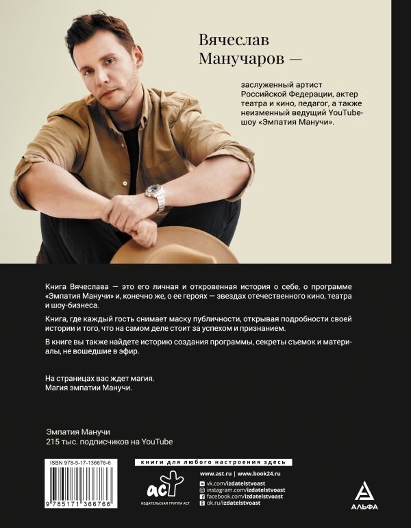 Книга Вячеслава — это его личная и откровенная история о себе, о программе "Эмпатия Манучи" и, конечно же, о ее героях — звездах отечественного кино, театра и шоу-бизнеса.