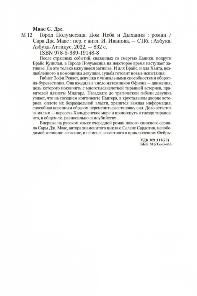 Впервые на русском языке очередной роман нового книжного сериала Сары Дж. Маас, автора знаменитого цикла о Селене Сардотин, непобедимой женщине-ассасине, и не менее известного о приключениях Фейры.