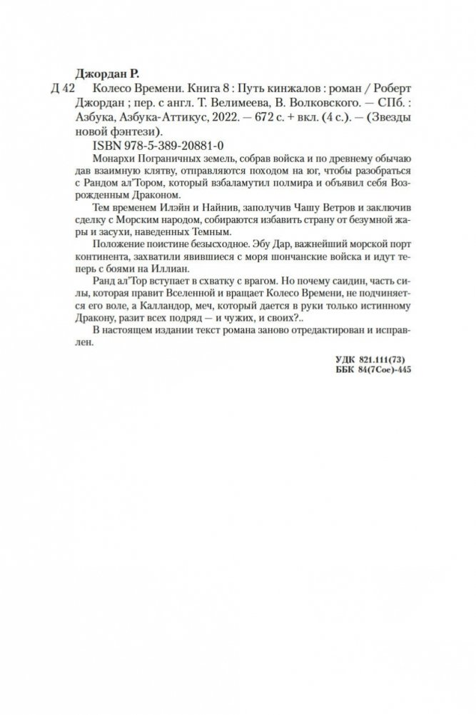 Ранд ал’Тор вступает в схватку с врагом. Но почему саидин, часть силы, которая правит Вселенной и вращает Колесо Времени, не подчиняется его воле, а Калландор, меч, который дается в руки только истинному Дракону, разит всех подряд — и чужих, и своих?..