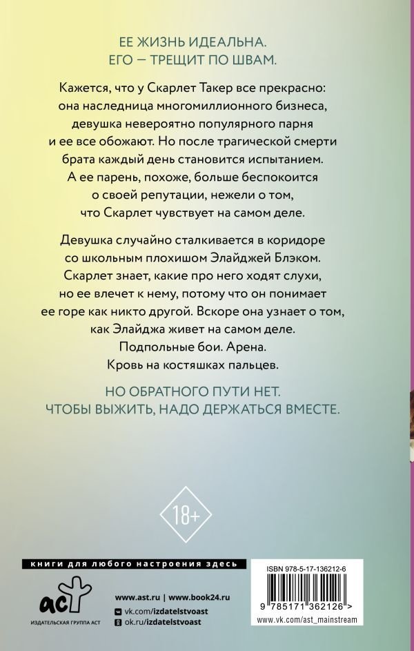 Девушка случайно сталкивается в коридоре со школьным плохишом Элайджей Блэком. Скарлет знает, какие про него ходят слухи, но ее влечет к нему, потому что он понимает ее горе как никто другой. Вскоре она узнает о том, как он живет на самом деле. Подпольные бои. Арена. Кровь на костяшках пальцев.