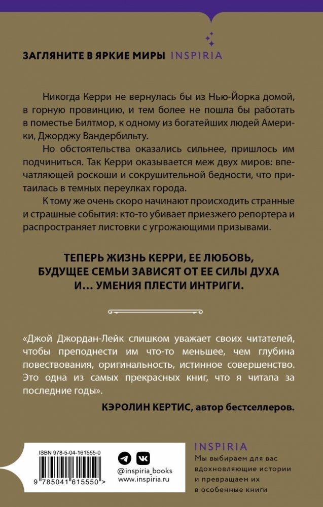 Никогда Керри не вернулась бы из Нью-Йорка домой, в горную провинцию, и тем более не пошла бы работать в поместье Билтмор, к одному из богатейших людей Америки, Джорджу Вандербильту. Но обстоятельства оказались сильнее, пришлось им подчиниться.