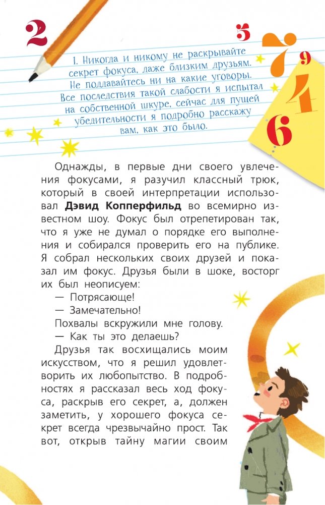 Учитель математики и популярный ютуб и тик-ток блогер Пётр Земсков решил рассказать ещё об одном своём таланте. Невероятно, но факт — Пётр Земсков волшебник. Он убеждён, что у любого, кто умеет хранить секреты, может получиться стать талантливым чародеем. Тайны настоящей магии можно постичь при помощи математики, теперь каждый может узнать, как это сделать. Эта книга — подробное описание рецептов всевозможных фокусов, трюков и иллюзий, переплетающихся с невероятными рассказами о волшебниках всего мира.