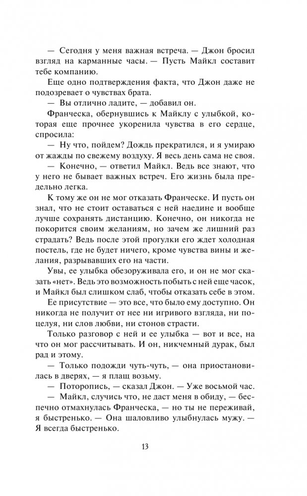 Год за годом светский повеса и обольститель, потерявший счет своим победам, Майкл Стерлинг скрывал за показной веселостью и легкомыслием сердечную рану — тайную любовь к Франческе Бриджертон, верной и добродетельной жене его кузена, графа Килмартина.