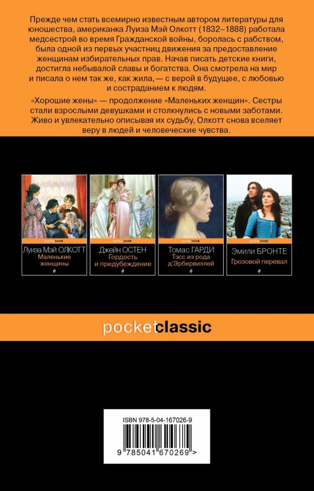 В "Хороших женах" сестры уже стали взрослыми девушками и столкнулись с новыми заботами. Живо и увлекательно описывая их судьбу, Олкотт вселяет веру в людей и человеческие чувства.