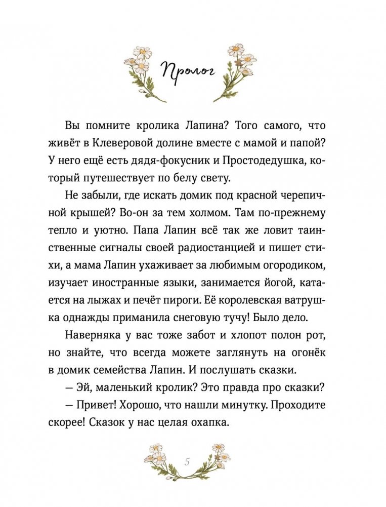 Хочешь узнать, почему белый кролик Лапин спокойно спит всю ночь и видит только хорошие сны? Потому что перед сном он любит сказки — не только слушать, но рассказывать.