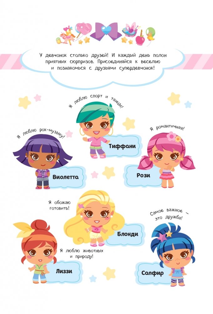 Познакомься с модными подружками и проведи с ними незабываемый день — пройдись по магазинам, загляни на вечеринку, присмотри за малышами в садике, выгуляй соседского пса и сделай еще много чего интересного — скучно не будет! Ищи отличия, проходи лабиринты, рисуй, раскрашивай, фантазируй — внутри больше двадцати веселых игр с весёлыми девчонками! Проведи время с настоящими модницами, красавицами и умницами — Тиффани, Рози, Лиззи, Виолетта, Сапфир и Блонди будут очень рады твоей компании. Окунись в мир дружбы, красоты и увлекательных головоломок, а главное, укрась все вокруг яркими, фантастически милыми наклейками!