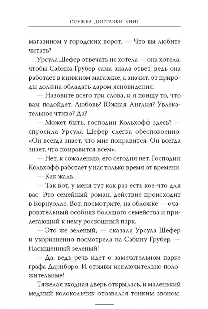 Каждый день Карл Кольхофф, пожилой продавец из книжного магазина, относит книги покупателям на дом. Это особенные покупатели, для которых Карл выбирает особенные книги. Каждого из своих клиентов Карл называет именем героя из книги (Геркулес, Фауст, Эффи и мистер Дарси) и каждого регулярно навещает, совершая книжную прогулку по одному и тому же маршруту.