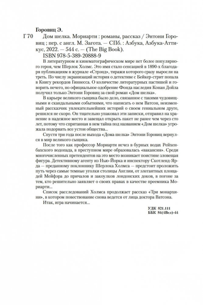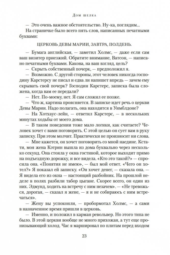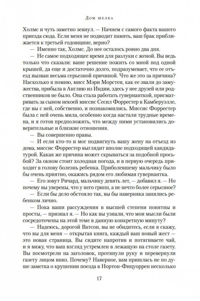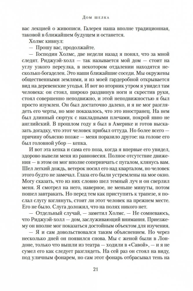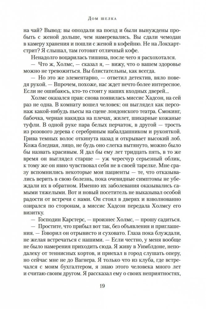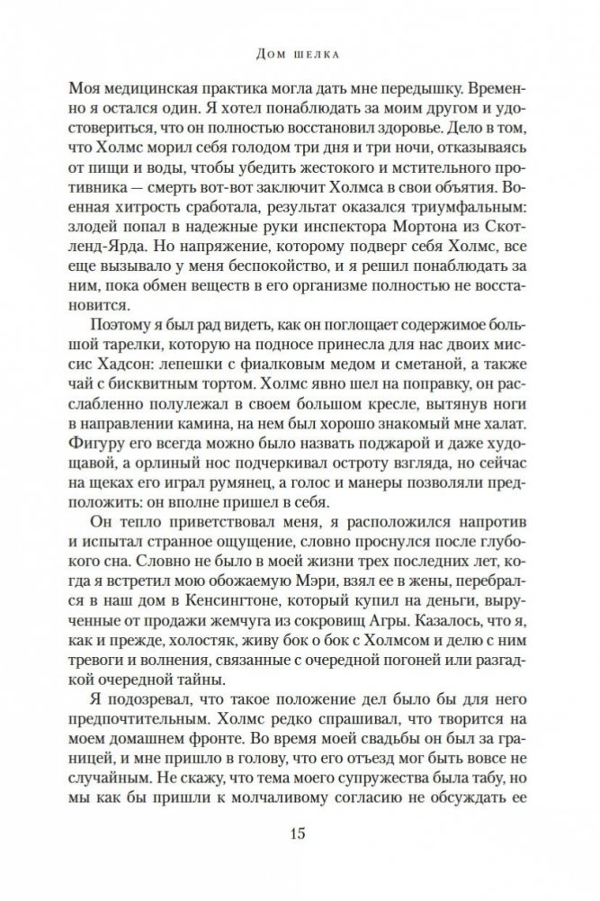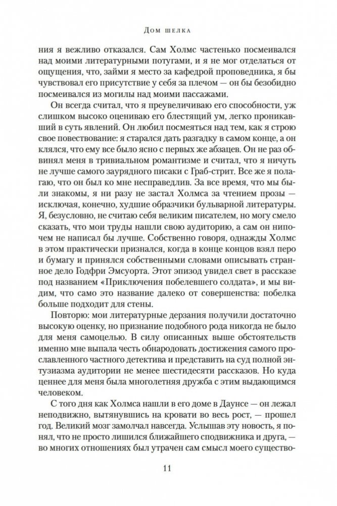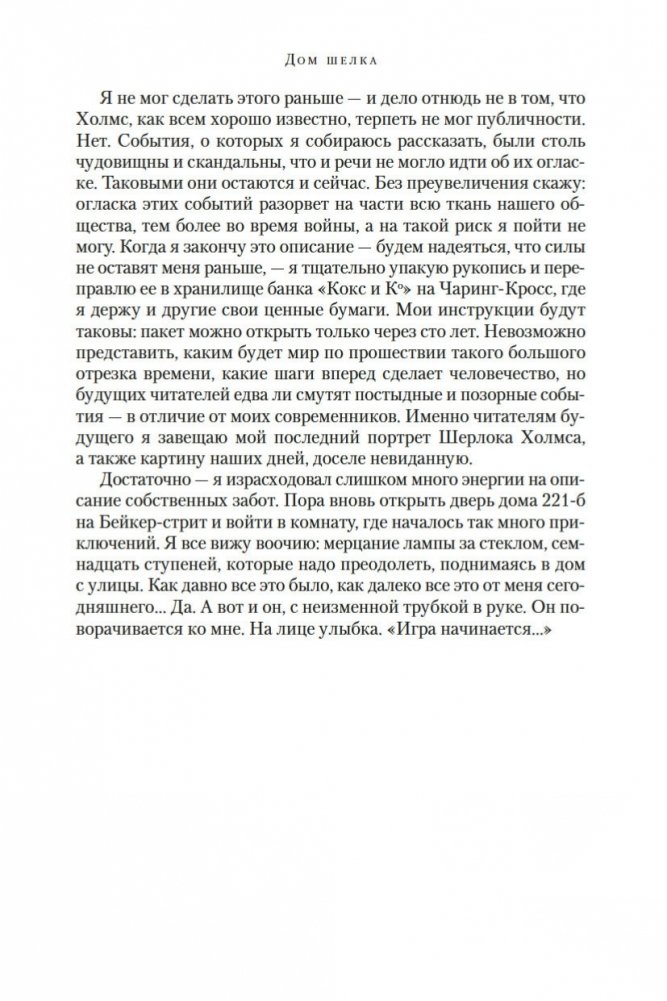 В карьере великого сыщика было дело, связанное с такими чудовищными и скандальными событиями, что написать о нем Ватсон, неизменный рассказчик увлекательнейших историй о своем гениальном друге, решился не скоро. Он тщательно упаковал эти записки, отправил на хранение в надежное место и завещал открыть пакет не ранее, чем через сто лет, потому что спрятанная в нем тайна под названием «Дом шелка» угрожала подорвать все устои общества...