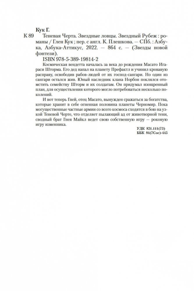 И вот теперь Гней, отец Масато, вынужден сражаться за богатства, которые хранит в себе огненная половина планеты Черномир. Пока могущественные частные армии со всего космоса сходятся в бою на узкой Теневой Черте, что отделяет пылающий ад от животворной тени, сводный брат Гнея Майкл ведет свою собственную игру — роковую игру изменника.