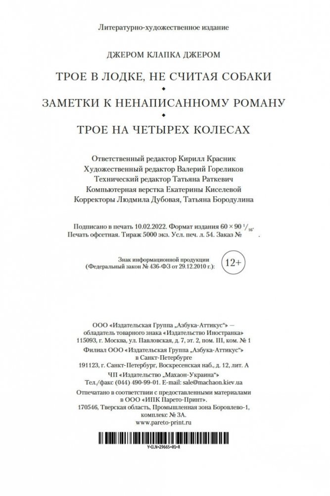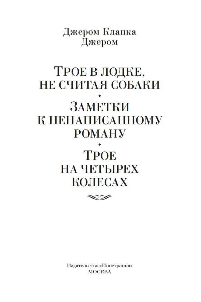 Летом 1888 года английский писатель Джером К. Джером, только что вступивший в законный брак, провел медовый месяц на Темзе. Из путевых впечатлений и воспоминаний этой счастливой поры родилась идея одной из самых смешных книг в мировой литературе. Приключения незадачливых, добродушных англичан, путешествующих по Темзе, о которых Джером написал в романе «Трое в лодке, не считая собаки» и в его продолжении «Трое на четырех колесах» (а также созданный между ними небольшой шедевр «Заметки к ненаписанному роману», в котором узнаются все те же незабываемые герои), стали хорошо известны даже в самых отдаленных уголках планеты. С неизменной любовью читатели относятся к произведениям Джерома и в России, где его замечательный талант оценили едва ли не выше, чем на родине писателя. А благодаря блистательной экранизации романа, осуществленной в 1979 году, главные роли в которой сыграли Андрей Миронов, Александр Ширвиндт и Михаил Державин, Джером стал нам еще ближе и понятнее.