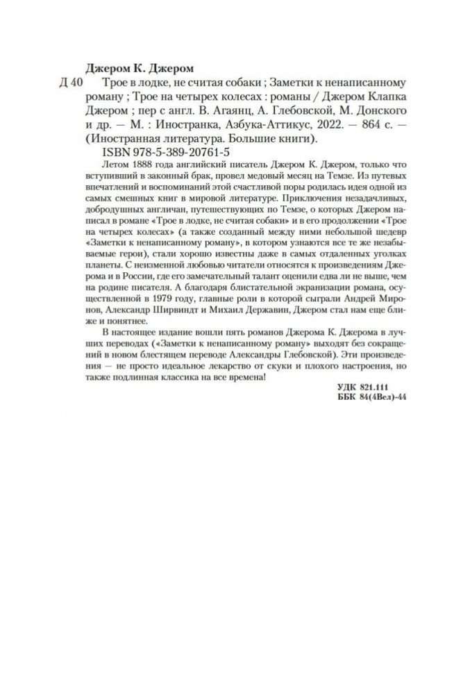 В настоящее издание вошли пять романов Джерома К. Джерома в лучших переводах («Заметки к ненаписанному роману» выходят в полном виде в новом блестящем переводе Александры Глебовской). Эти произведения — не просто идеальное лекарство от скуки и плохого настроения, но также подлинная классика на все времена!