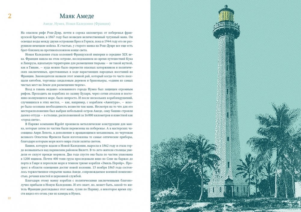 В этом необычном путешествии к самым отдаленным маякам на планете вы познакомитесь не только с особенностями их архитектуры, внутреннего устройства и технического оснащения, но и со множеством увлекательных историй, связанных со строительством маяков и с их смотрителями, с кораблекрушениями и с мистическими происшествиями. Это и рассказ о слепом смотрителе маяка за полярным кругом, о пришедшей на помощь терпящим бедствие морякам бесстрашной девушке, о призраке мичмана, являющемся на маяк каждую ночь и выстукивающем на пишущей машинке некое предостережение, о странном человеке, который предпочел укрыться от всех в башне в открытом море… В этих историях сходятся мотивы и творческие горизонты Жюля Верна, Эдгара Аллана По, Вирджинии Вулф, проведшей детство на маяке, Редьярда Киплинга, Рэя Брэдбери и других великих писателей, стремившихся поведать миру об одиночестве, о тревоге, о храбрости и счастье.