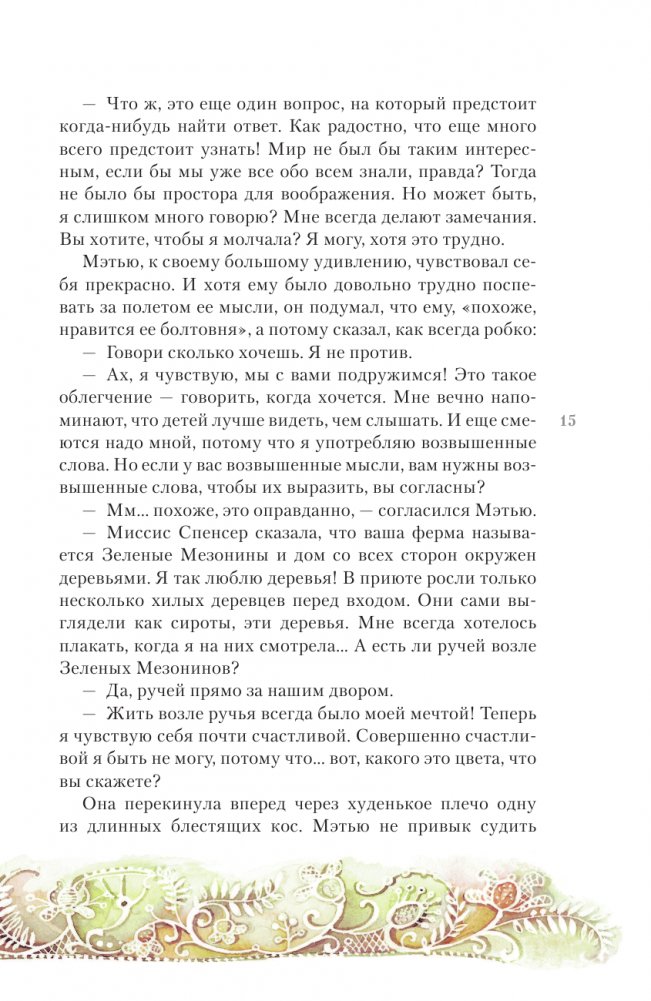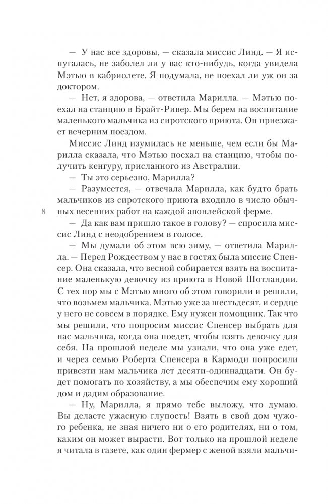 Аня — сирота, девочка из приюта, случайно попадает в дом брата и сестры Мэтью и Мариллы вместо мальчика, который должен был помогать на ферме своим опекунам. Поначалу они намеревались отправить болтливую девчонку обратно в приют. Но очень скоро Ане удалось своей непосредственностью завоевать сердца жителей Авонлеи.