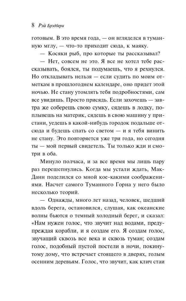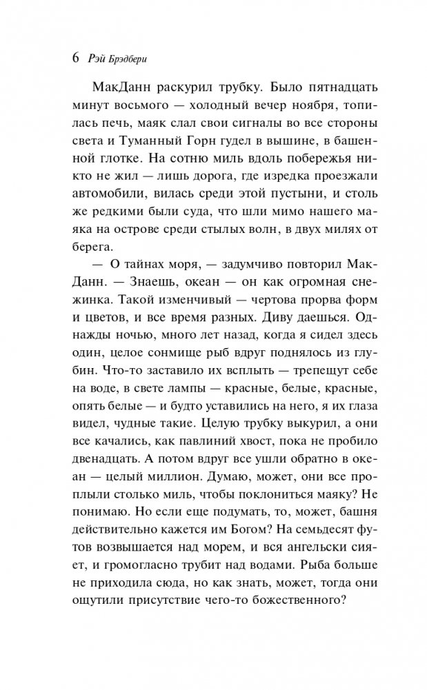 Рэй Брэдбери (1920—2012) — великий мастер пера, классик мировой литературы и живая легенда фантастики. Его книги уже более полувека увлеченно читают миллионы людей во всем мире. Брэдбери намного больше, чем писатель-фантаст, — его творчество можно отнести к «высокой», внежанровой литературе. Известнейшие романы, рассказы и повести, яркие и искренние, принесли Рэю Брэдбери славу не только придумщика удивительных историй, но и философа, мыслителя, психолога.
