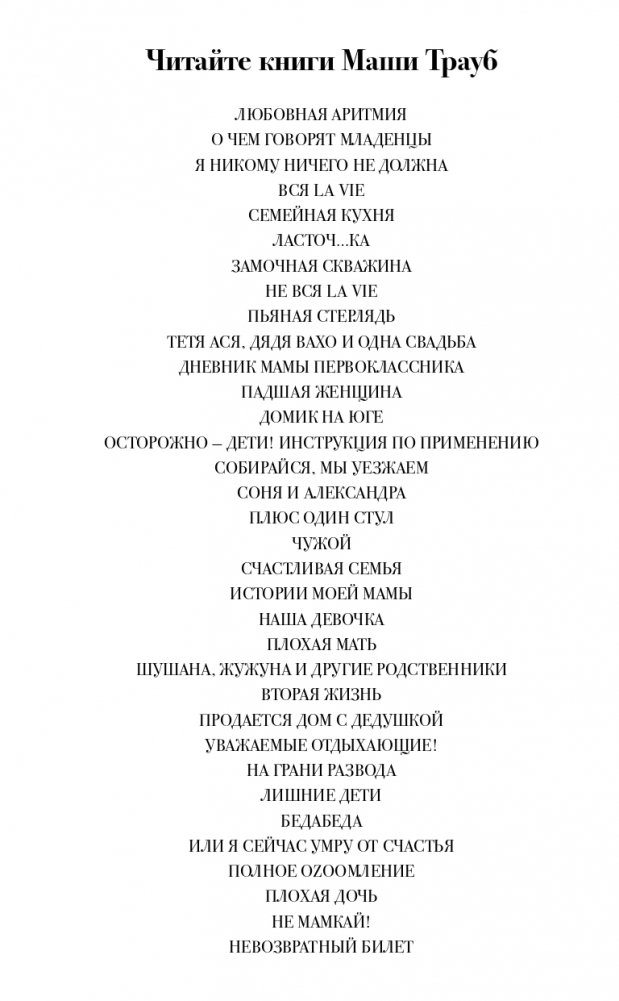 Маша Трауб в который раз удивляет своих читателей. «Невозвратный билет» — сборник из четырех историй, калейдоскоп чужих судеб, которые переживаешь как свои. Ситуации, знакомые каждому, когда случай вмешивается в размеренное течение нашей жизни, разубеждая в том, что мы можем ею управлять.
