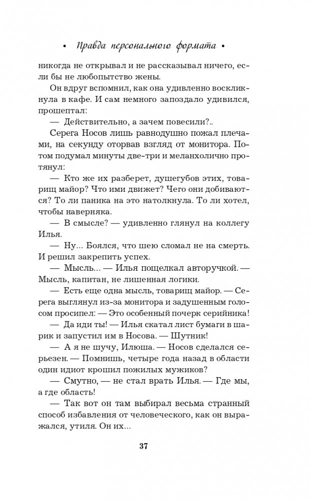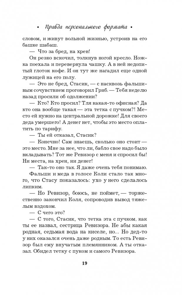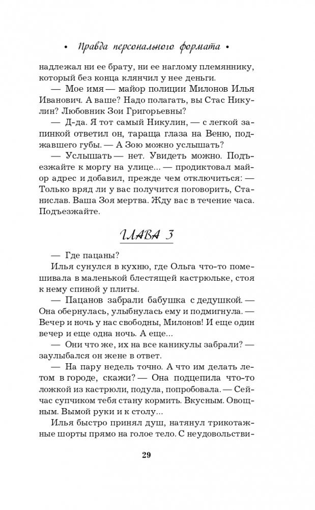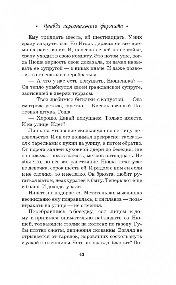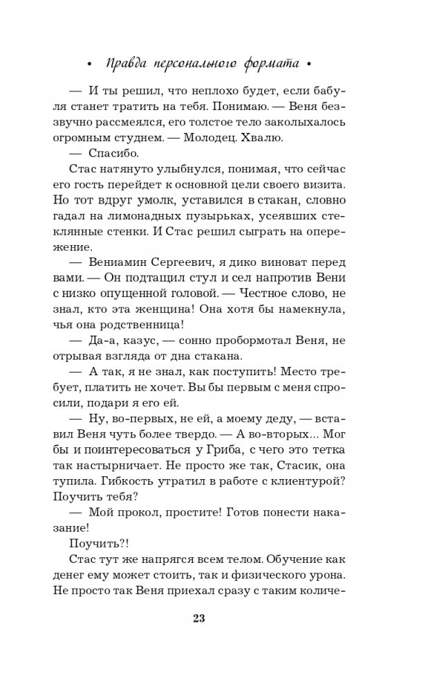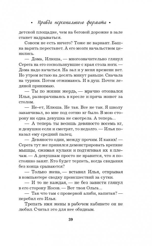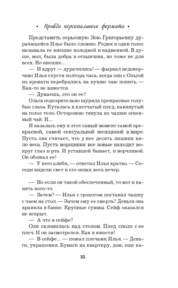 Новая книга Галины Романовой «Правда персонального формата» — очень интригующая и трогательная история о том, насколько мы ответственны за то, что делаем со своей собственной жизнью. Несколько увлекательных сюжетных линий, повествующих о судьбах разных людей, развиваются параллельно, чтобы в финале сплестись в тугой узел, когда все тайны будут раскрыты, а злодеи — выведены на чистую воду.