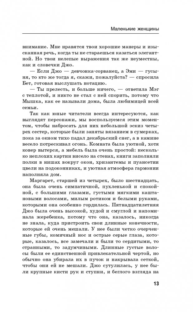 «Маленькие женщины» — искренний и трогательный роман о детстве и юности четырех сестер. Они сообща справляются с трудностями, испытывают горести, радости, мечтают о будущем и проходят непростой путь взросления.