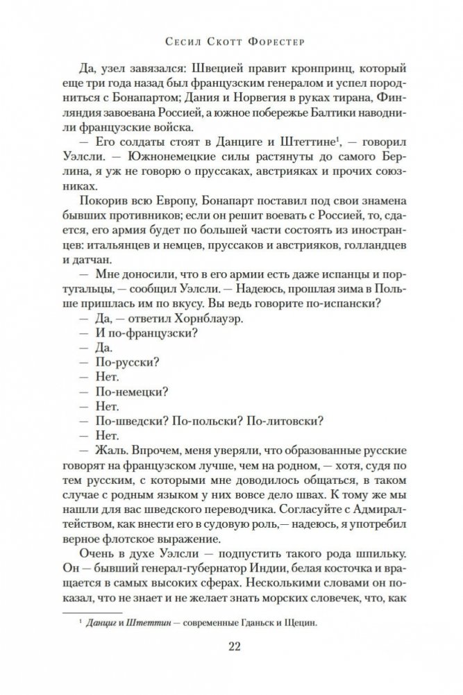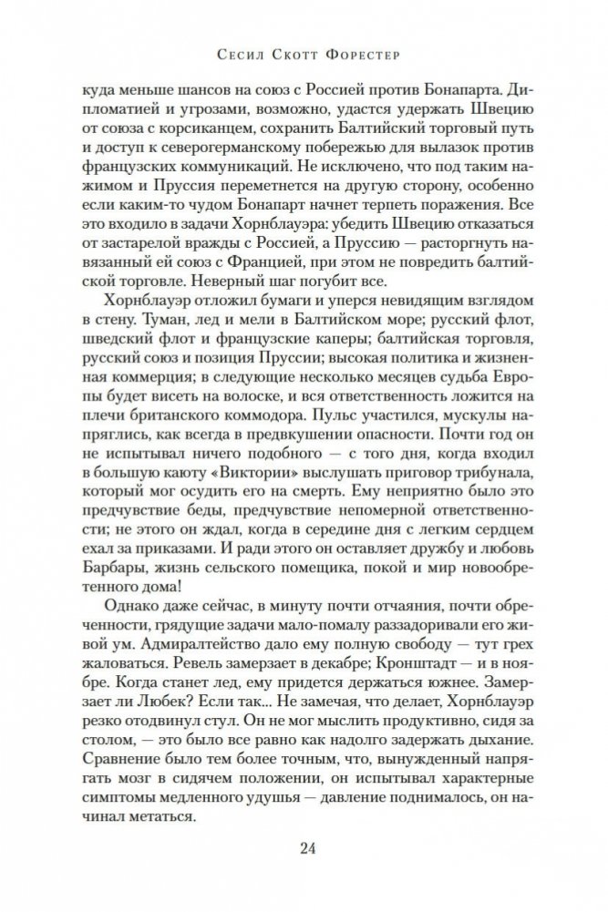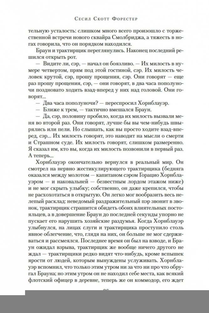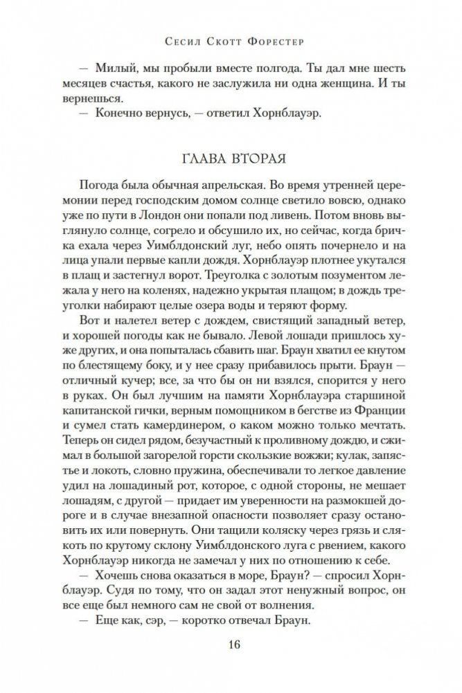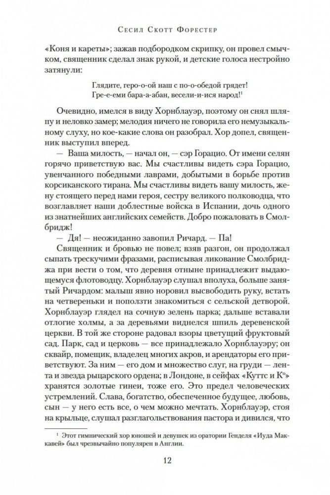 Сага об офицере королевского флота Великобритании Горацио Хорнблауэре, прошедшем славный и трудный путь от простого мичмана до лорда и адмирала, — уникальное явление в мировой историко-авантюрной литературе. Миллионный круг почитателей, бесконечные тиражи, поистине мировое признание, выведшее писателя в классики жанра, кино- и телеверсии с участием таких известных актеров, как Грегори Пек, Кристофер Ли, и других звезд мирового кинематографа. Автор саги, Сесил Скотт Форестер, говорил о своем герое: «Он доставил мне бесчисленных друзей по всему миру. Таможенники читают мою фамилию и пропускают мой багаж, не досматривая. Он свел меня с адмиралами и принцессами, и я благодарен ему, честное слово, хотя и думаю часто, что лучше б ему этого не делать». Не каждому писателю настолько повезло с персонажем. Сага о Горацио Хорнблауэре оставила заметный литературный след. Книжный сериал Бернарда Корнуэлла о стрелке Шарпе создавался под влиянием Форестера. Патрик О’Брайен, отталкиваясь от книг знаменитой саги, написал многотомную эпопею о капитане Обри. Даже Гарри Гаррисон спародировал по-доброму образ героя Форестера в одном из своих рассказов («Капитан Гонарио Харпплейер»). Книга завершает повествование о морских подвигах Горацио Хорнблауэра — личности, которая, по словам Уинстона Черчилля, «вызывает из прошлого великий и суровый образ королевского флота в эпоху его славы».
