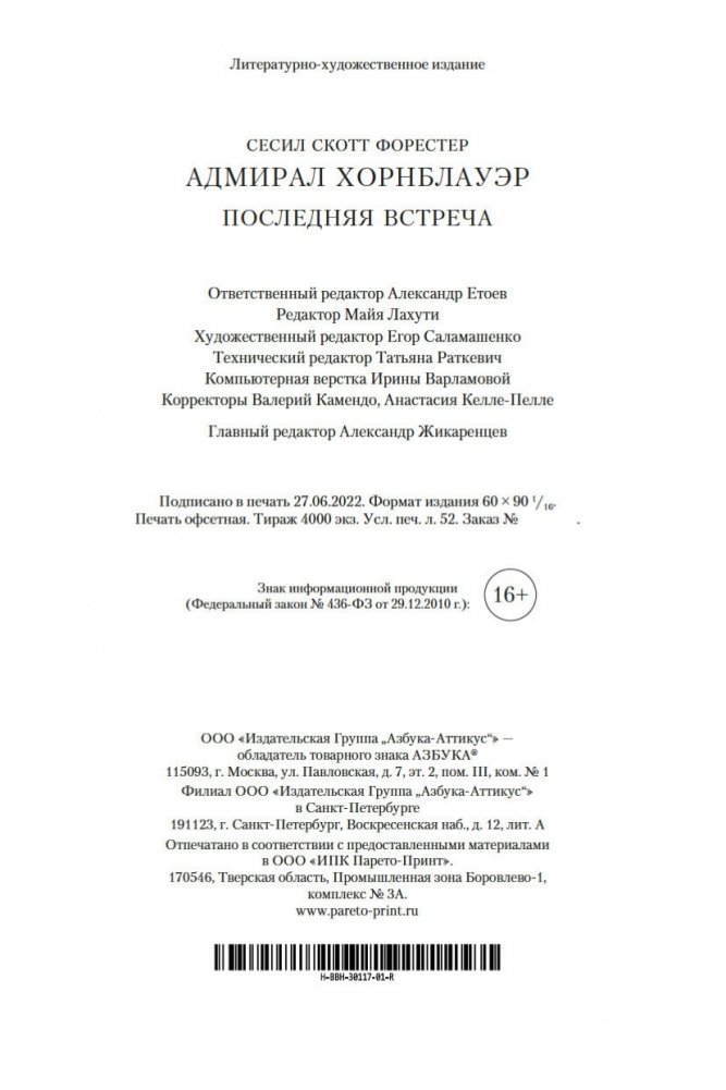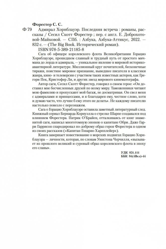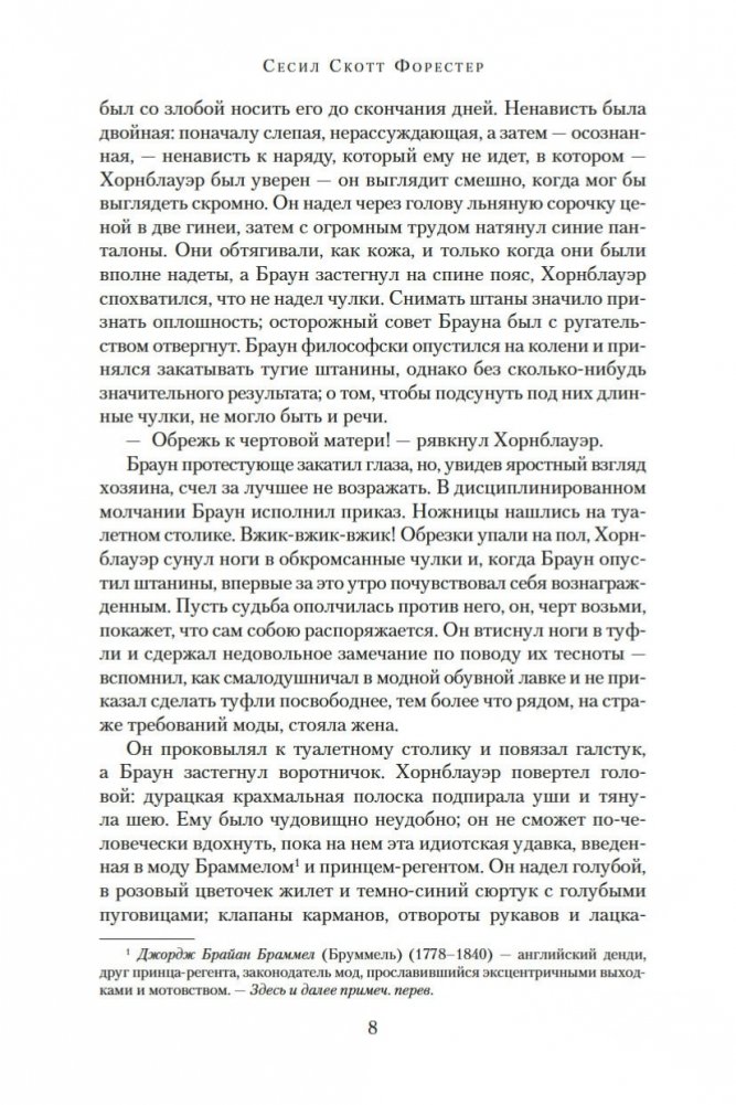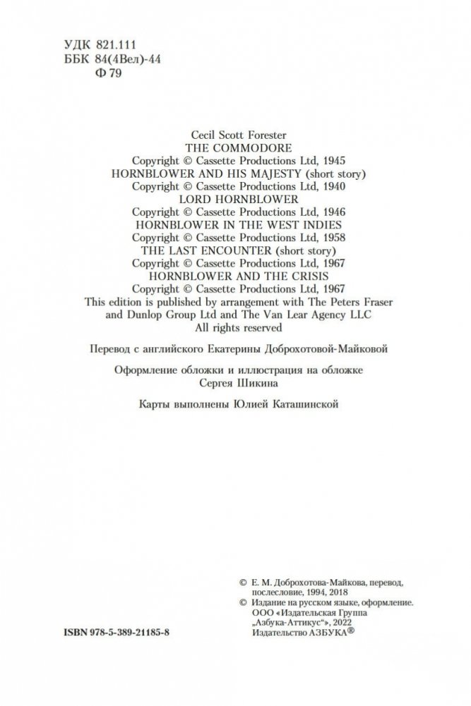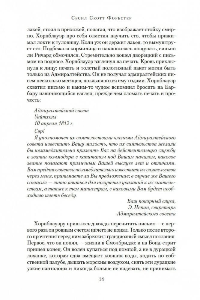 Сага об офицере королевского флота Великобритании Горацио Хорнблауэре, прошедшем славный и трудный путь от простого мичмана до лорда и адмирала, — уникальное явление в мировой историко-авантюрной литературе. Миллионный круг почитателей, бесконечные тиражи, поистине мировое признание, выведшее писателя в классики жанра, кино- и телеверсии с участием таких известных актеров, как Грегори Пек, Кристофер Ли, и других звезд мирового кинематографа. Автор саги, Сесил Скотт Форестер, говорил о своем герое: «Он доставил мне бесчисленных друзей по всему миру. Таможенники читают мою фамилию и пропускают мой багаж, не досматривая. Он свел меня с адмиралами и принцессами, и я благодарен ему, честное слово, хотя и думаю часто, что лучше б ему этого не делать». Не каждому писателю настолько повезло с персонажем. Сага о Горацио Хорнблауэре оставила заметный литературный след. Книжный сериал Бернарда Корнуэлла о стрелке Шарпе создавался под влиянием Форестера. Патрик О’Брайен, отталкиваясь от книг знаменитой саги, написал многотомную эпопею о капитане Обри. Даже Гарри Гаррисон спародировал по-доброму образ героя Форестера в одном из своих рассказов («Капитан Гонарио Харпплейер»). Книга завершает повествование о морских подвигах Горацио Хорнблауэра — личности, которая, по словам Уинстона Черчилля, «вызывает из прошлого великий и суровый образ королевского флота в эпоху его славы».