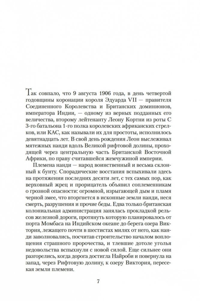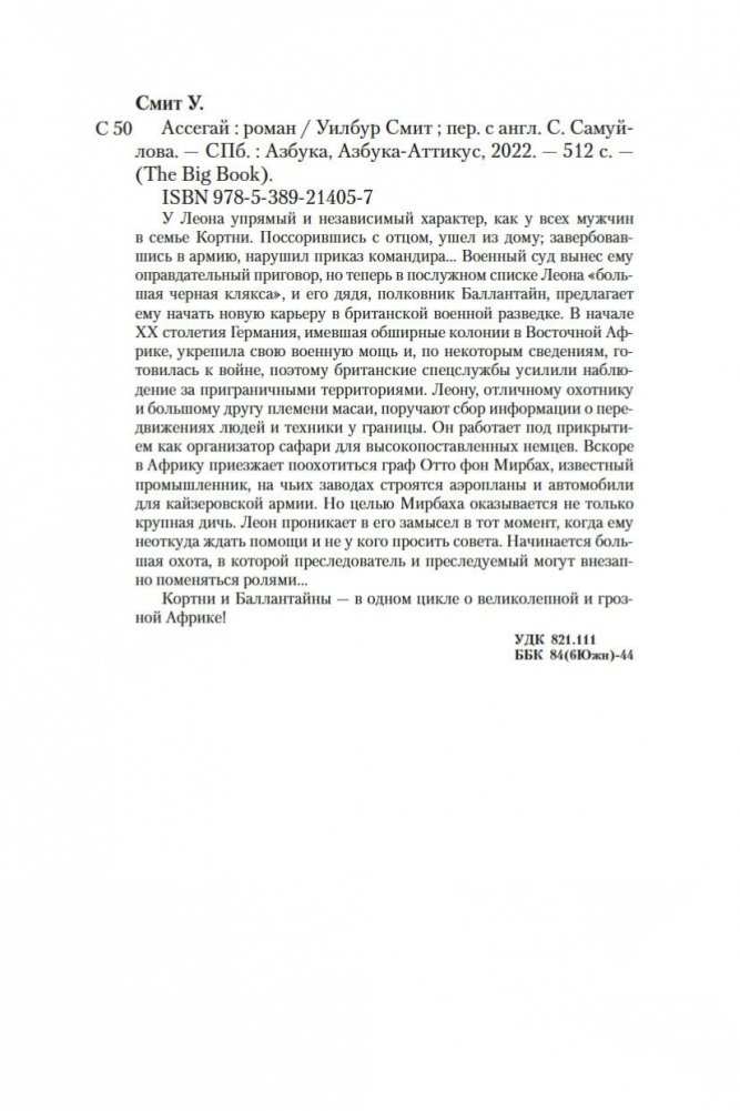 У Леона упрямый и независимый характер, как у всех мужчин в семье Кортни. Поссорившись с отцом, ушел из дому; завербовавшись в армию, нарушил приказ командира... Военный суд вынес ему оправдательный приговор, но теперь в послужном списке Леона «большая черная клякса», и его дядя, полковник Баллантайн, предлагает ему начать новую карьеру в британской военной разведке. В начале XX столетия Германия, имевшая обширные колонии в Восточной Африке, укрепила свою военную мощь и, по некоторым сведениям, готовилась к войне, поэтому британские спецслужбы усилили наблюдение за приграничными территориями. Леону, отличному охотнику и большому другу племени масаи, поручают сбор информации о передвижениях людей и техники у границы. Он работает под прикрытием как организатор сафари для высокопоставленных немцев. Вскоре в Африку приезжает поохотиться граф Отто фон Мирбах, известный промышленник, на чьих заводах строятся аэропланы и автомобили для кайзеровской армии. Но целью Мирбаха оказывается не только крупная дичь. Леон проникает в его замысел в тот момент, когда ему неоткуда ждать помощи и не у кого просить совета. Начинается большая охота, в которой преследователь и преследуемый могут внезапно поменяться ролями... Кортни и Баллантайны — в одном цикле о великолепной и грозной Африке!