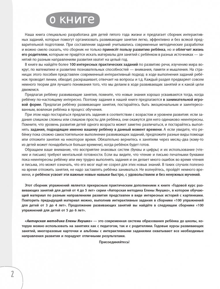 Авторская методика Елены Янушко — современная высокоэффективная серия развивающих книг для современных малышей. В основе методики лежит 20-летний опыт развивающих занятий с детьми!