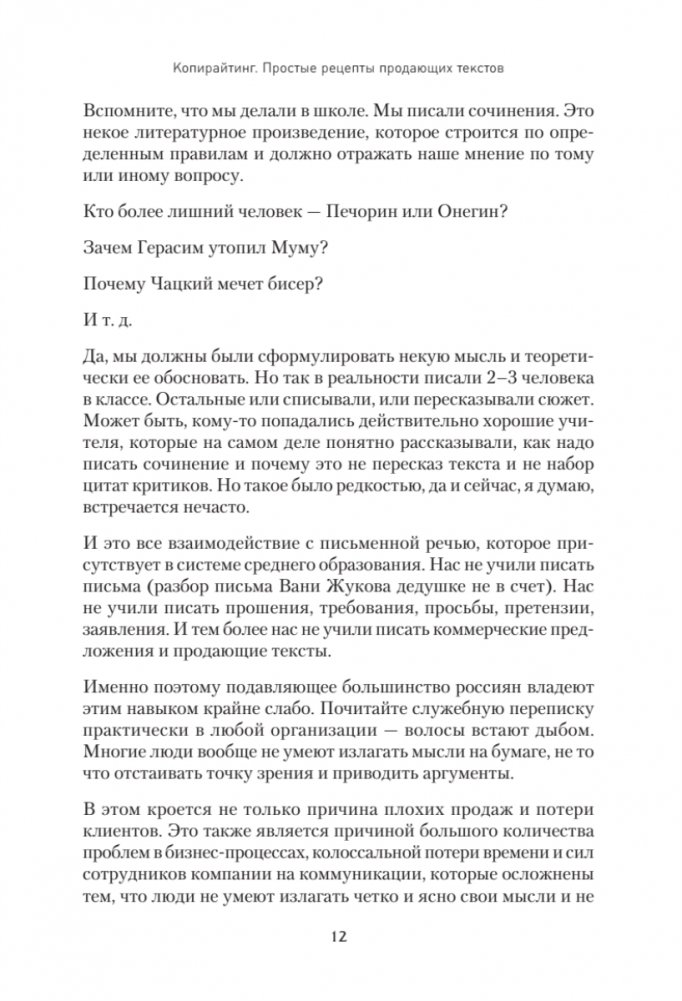 Автор подробно рассматривает структуру основных текстов, разбирает типичные ошибки составителей, дает основные правила написания эффективных документов. Также вы найдете уникальный набор приемов, которые при необходимости помогут усилить эффект, а значит и существенно улучшить результаты работы, увеличить продажи, повысить конверсию.