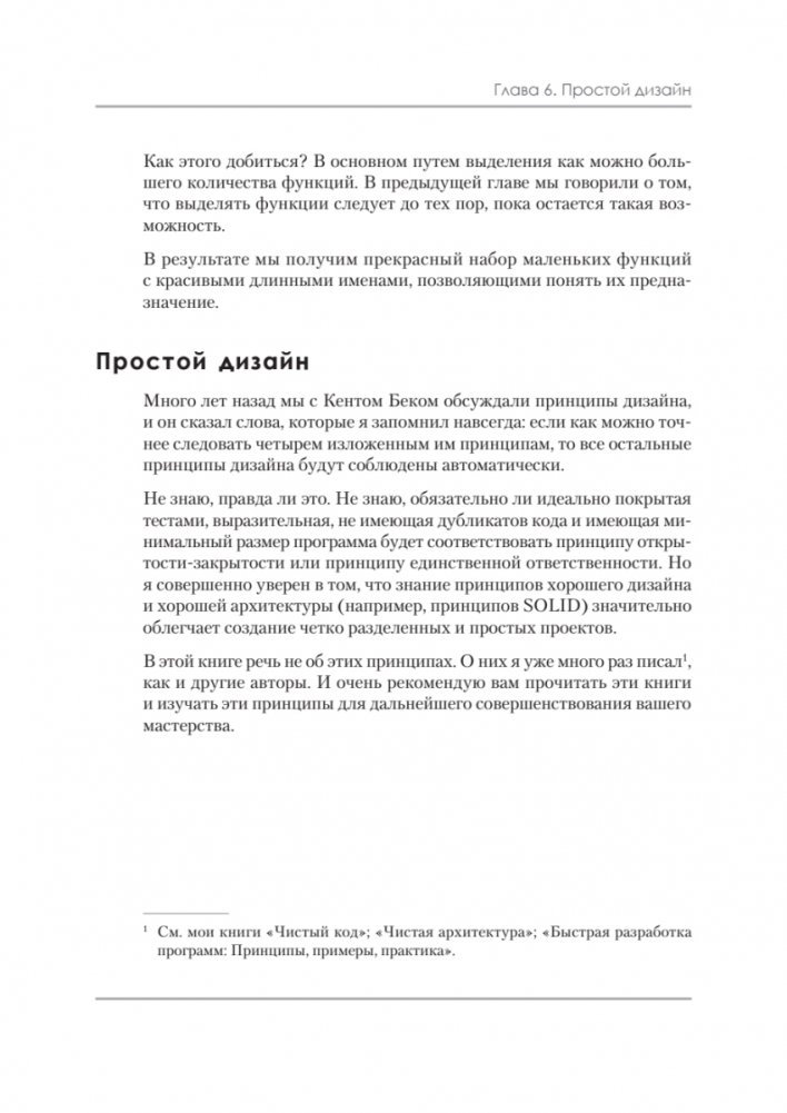 Роберт Мартин, автор бестселлера «Чистый код», начинает с прагматического руководства по пяти основополагающим дисциплинам создания программного обеспечения: разработка через тестирование, рефакторинг, простой дизайн, совместное программирование и тесты. Затем он переходит к стандартам — обрисовывая ожидания «мира» от разработчиков программного обеспечения, рассказывая, как часто различаются эти подходы, и помогает вам устранить несоответствия. Наконец, он обращается к этике программиста, давая десять фундаментальных постулатов, которым должны следовать все разработчики программного обеспечения.