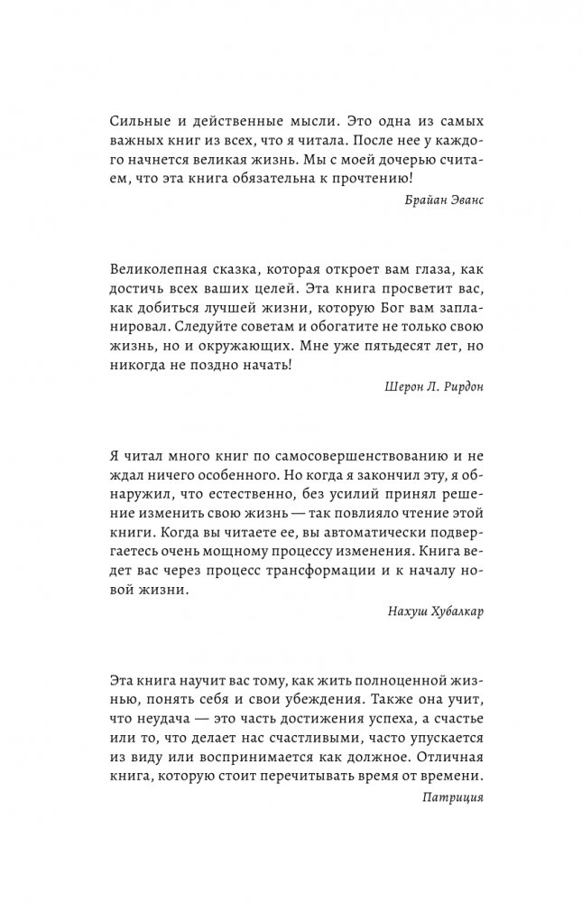 Просто начните читать, выполнять несложные упражнения и следовать простым советам, которые она предлагает. И вы "очнетесь"! Вы увидите возможности, которые всегда были рядом, поймете, в чем ваши сильные стороны, и обретете истинный смысл жизни. И это еще не все! Вместе с этой великой книгой в вашу жизнь войдут радость и счастье.