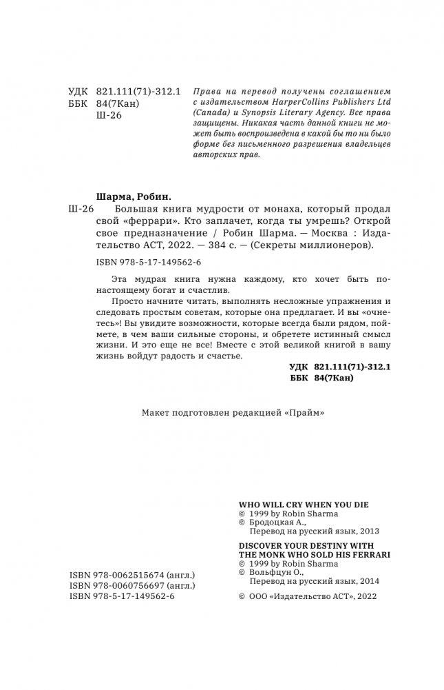 Большая книга мудрости от монаха, который продал свой «феррари». Кто заплачет, когда ты умрешь? Открой свое предназначение