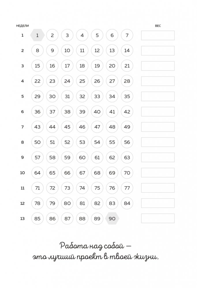 Он симпатичный, понятный и легкий в использовании. В течение 90 дней вы сможете отслеживать свой распорядок дня, чтобы достичь желаемых результатов, а также: