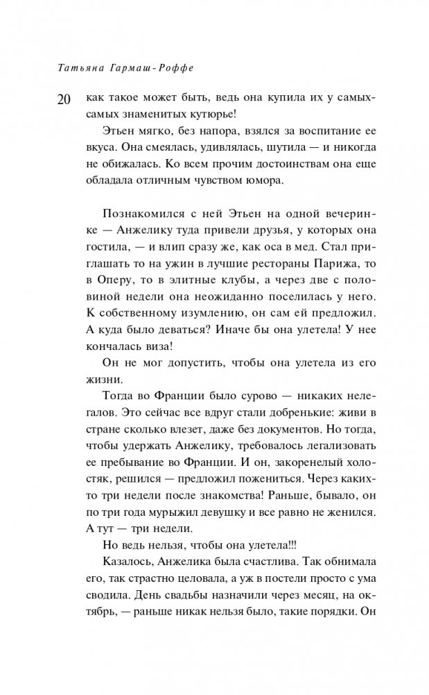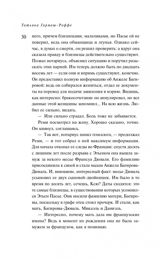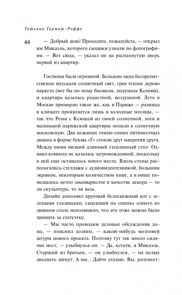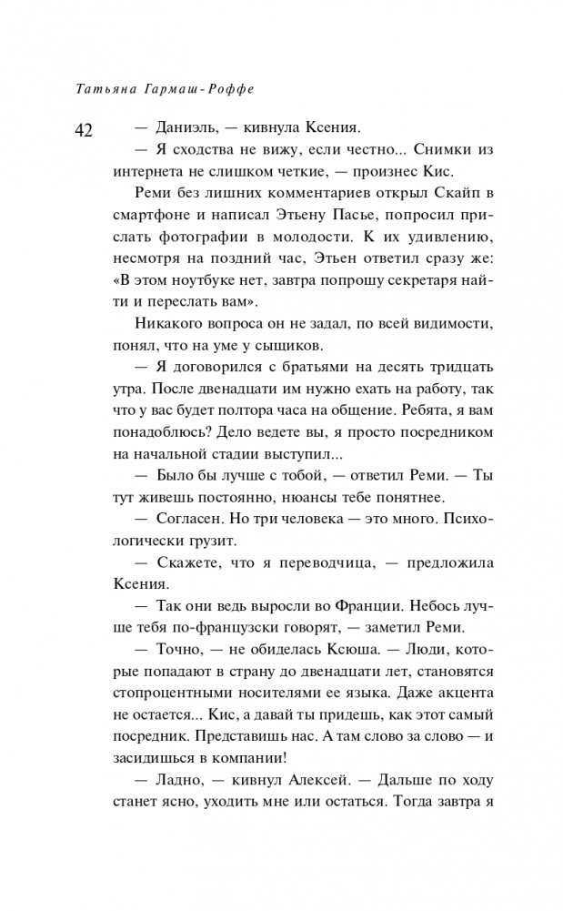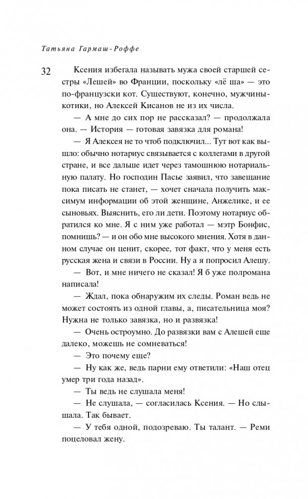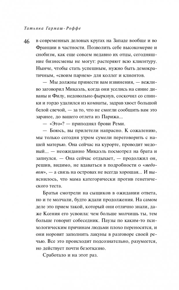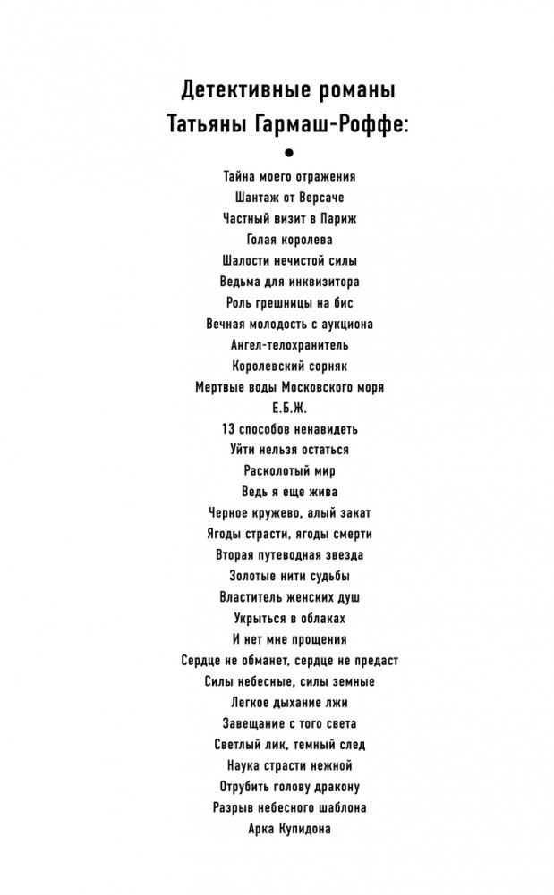 Татьяна Гармаш-Роффе знает, каким должен быть настоящий детектив, и следует в своих романах законам жанра. Театральный критик, она умеет выстраивать диалоги и драматургию чувств. Неординарная личность, она дарит часть своей харизмы персонажам.
