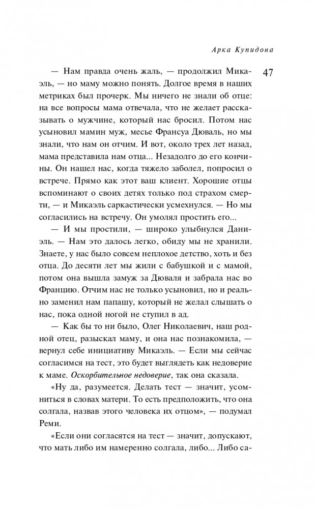 Когда Реми Делье, парижский детектив, взялся за дело по поиску наследников богатого финансиста Этьена Пасье, он и не предполагал, с каким клубком загадок ему придется столкнуться. Втроем — Реми с женой Ксенией и старинным другом Алексеем Кисановым, — детективы распутывают этот клубок ниточку за ниточкой. Разгадки приходится искать в Москве, в Париже и даже на Балеарских островах. Тем временем темное прошлое настигает Анжелу, бывшую возлюбленную Этьена. Под угрозой не только она сама, но и люди, вовлеченные в орбиту семьи: первым при загадочных обстоятельствах гибнет муж Анжелы. А следующие в списке — ее сыновья! Реми должен срочно понять, что случилось много лет назад, чтобы выйти на след мстителя раньше, чем он сумеет убить всех членов семьи...