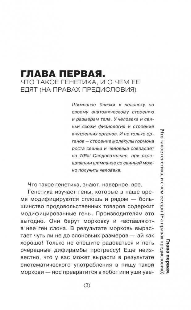 В прочем, стоит остановиться в перечислении столь поверхностных фактов о генетике, известных большинству. В этой книге вы откроете для себя генетику с совершенно новых сторон и узнаете, что же скрывается за ширмой лабораторий, в замудреных аббревиатурах и что на самом деле представляет из себя наука генетика.