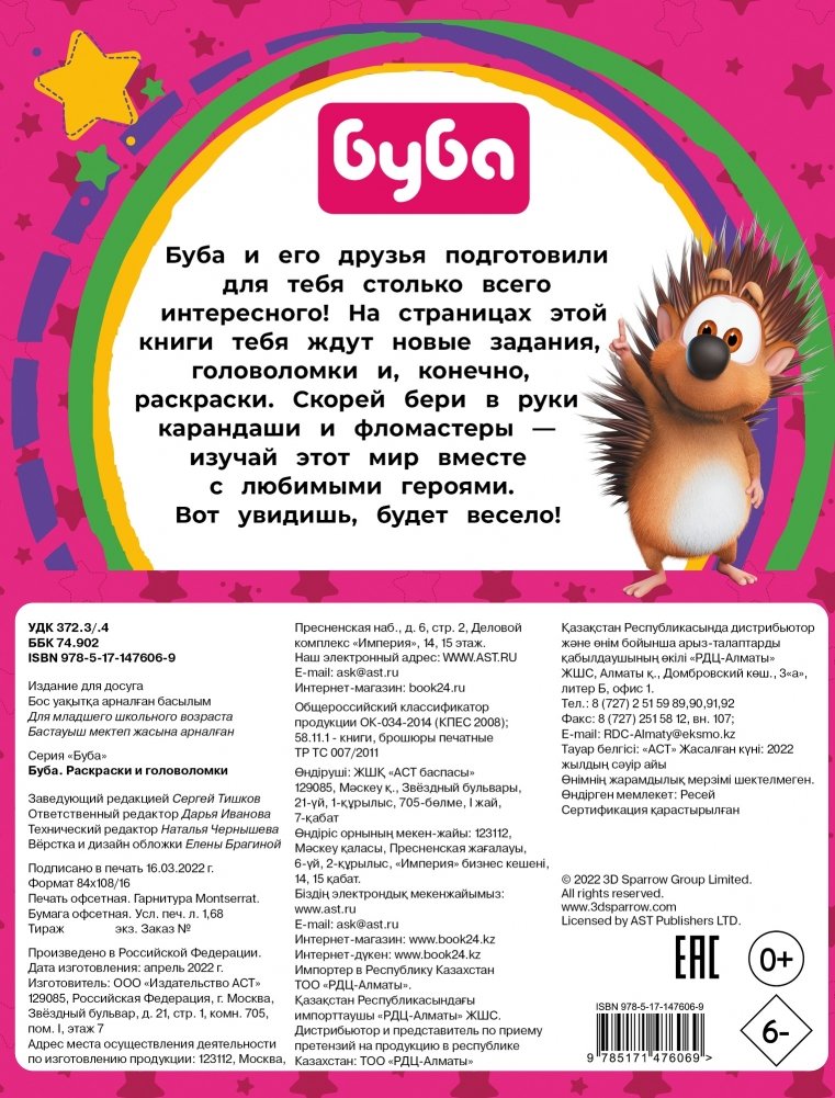 Буба и его друзья подготовили для тебя столько всего интересного! На страницах этой книги тебя ждут новые задания, головоломки и, конечно, раскраски. Скорей бери в руки карандаши и фломастеры — изучай этот мир вместе с любимыми героями. Вот увидишь, будет весело!