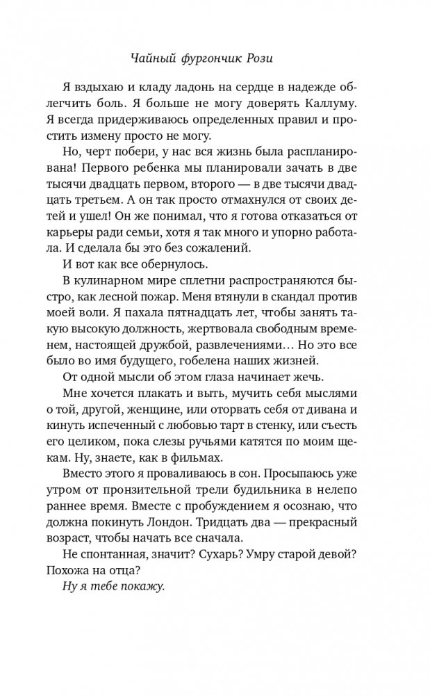 Рози довольна своей жизнью. Ее день расписан по минутам, у нее прекрасный муж и блестящая карьера в мишленовском ресторане. Но в день, когда ей исполняется тридцать два, ее идеальный мир распадается на миллион мелких осколков. Муж заявляет, что она скучная, предсказуемая, а сам он влюблен в другую и хочет развестись.